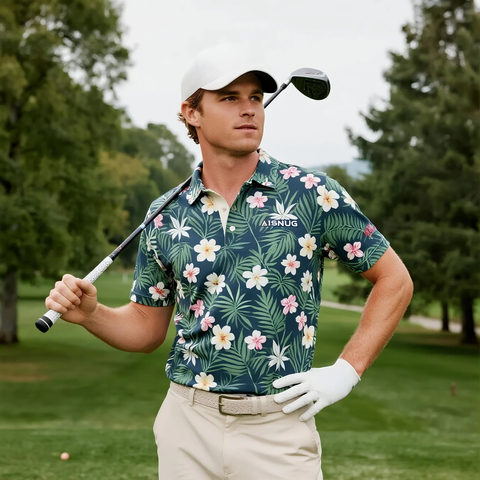 Özel Logo yüksek kalite 4 yönlü streç konfor UPF 50 + açık spor desen baskı Golf T shirt Golf Polo gömlekler